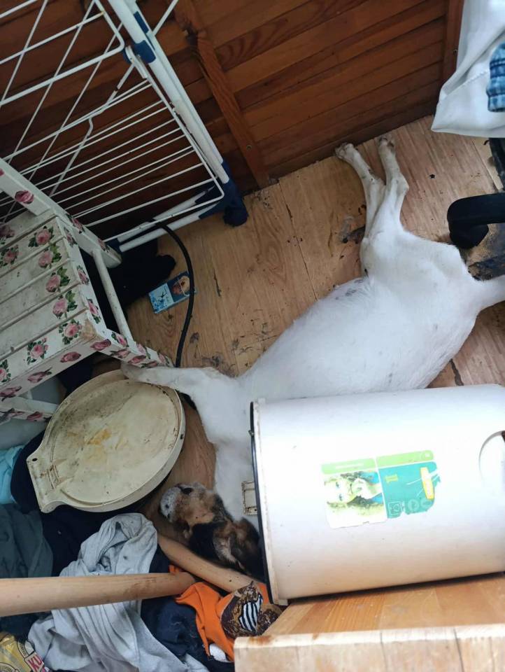 Jeden z czworonogów, szczeniak, żyje, choć jego stan został określony jako bardzo zły – pies jest nie tylko przeraźliwie wystraszony, ale przede wszystkim skrajnie zagłodzony. Dorosła suczka nie przeżyła tego koszmaru, w momencie interwencji służb była martwa.