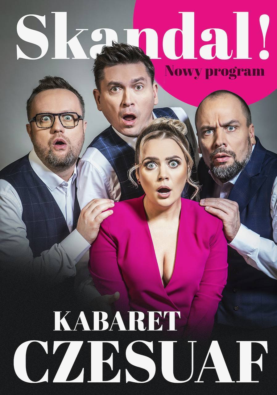 KABARET CZESUAF nie zwalnia tempa. Po doskonale przyjętym przez widzów programie "Przyjęcie", czwórka Cześków rusza w Polskę z całkowicie nowym programem zatytułowanym "Skandal!". Występ odbędzie się m.in. w Sieradzkim Centrum Kultury.