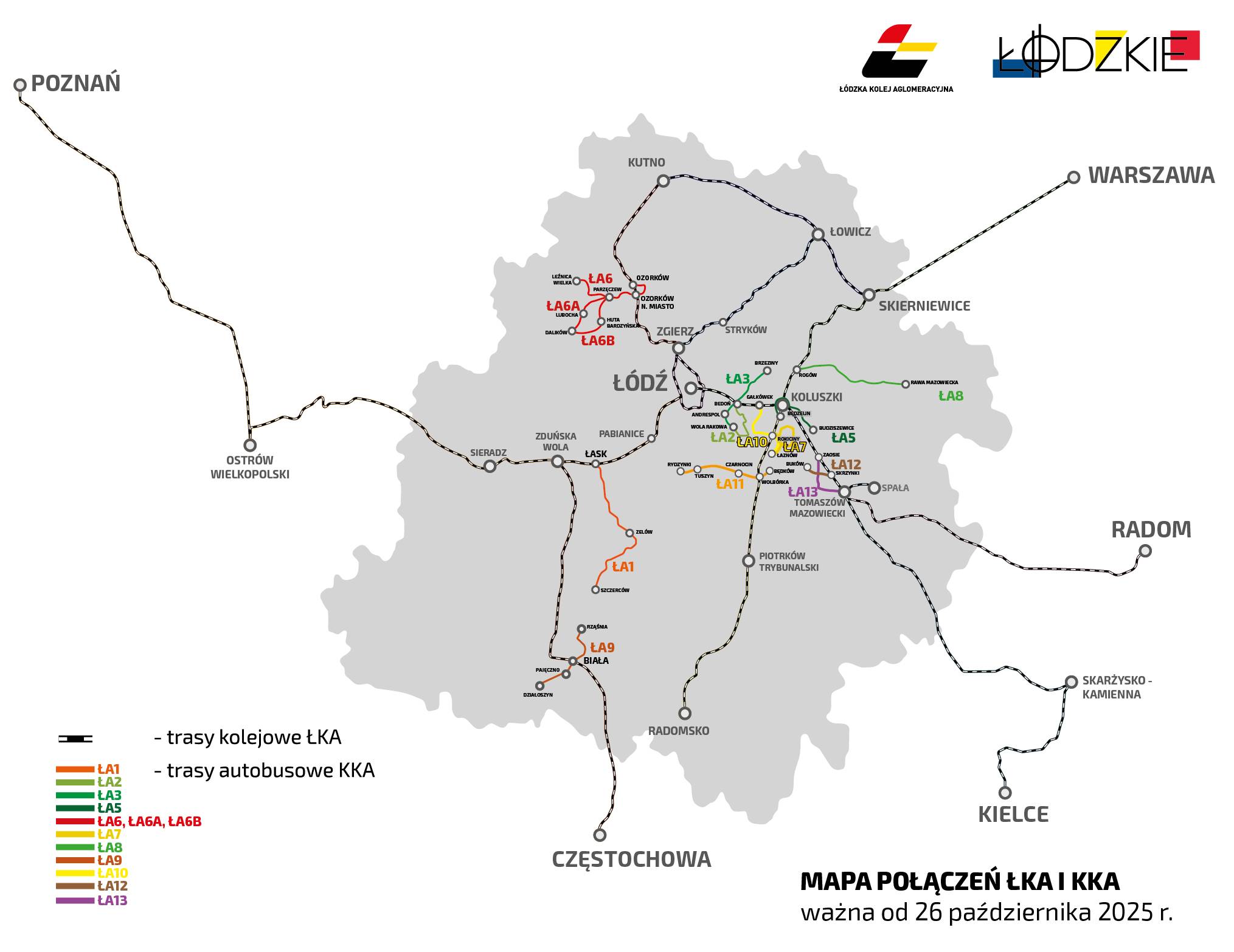 Kolejowa Komunikacja Autobusowa ŁKA ciągle się rozwija. W lipcu jej flota powiększyła się o 13 dodatkowych busów. Na prośbę mieszkańców i samorządów połączenia są cały czas ulepszane. Od stycznia do końca września z usług KKA skorzystało 440 tys. pasażerów. Rozkłady jazdy KKA są skoordynowane z rozkładem jazdy pociągów, co oznacza, że odjazd autobusu ze stacji przesiadkowej jest dopasowany do czasu przyjazdu skomunikowanego z nim pociągu i odwrotnie.