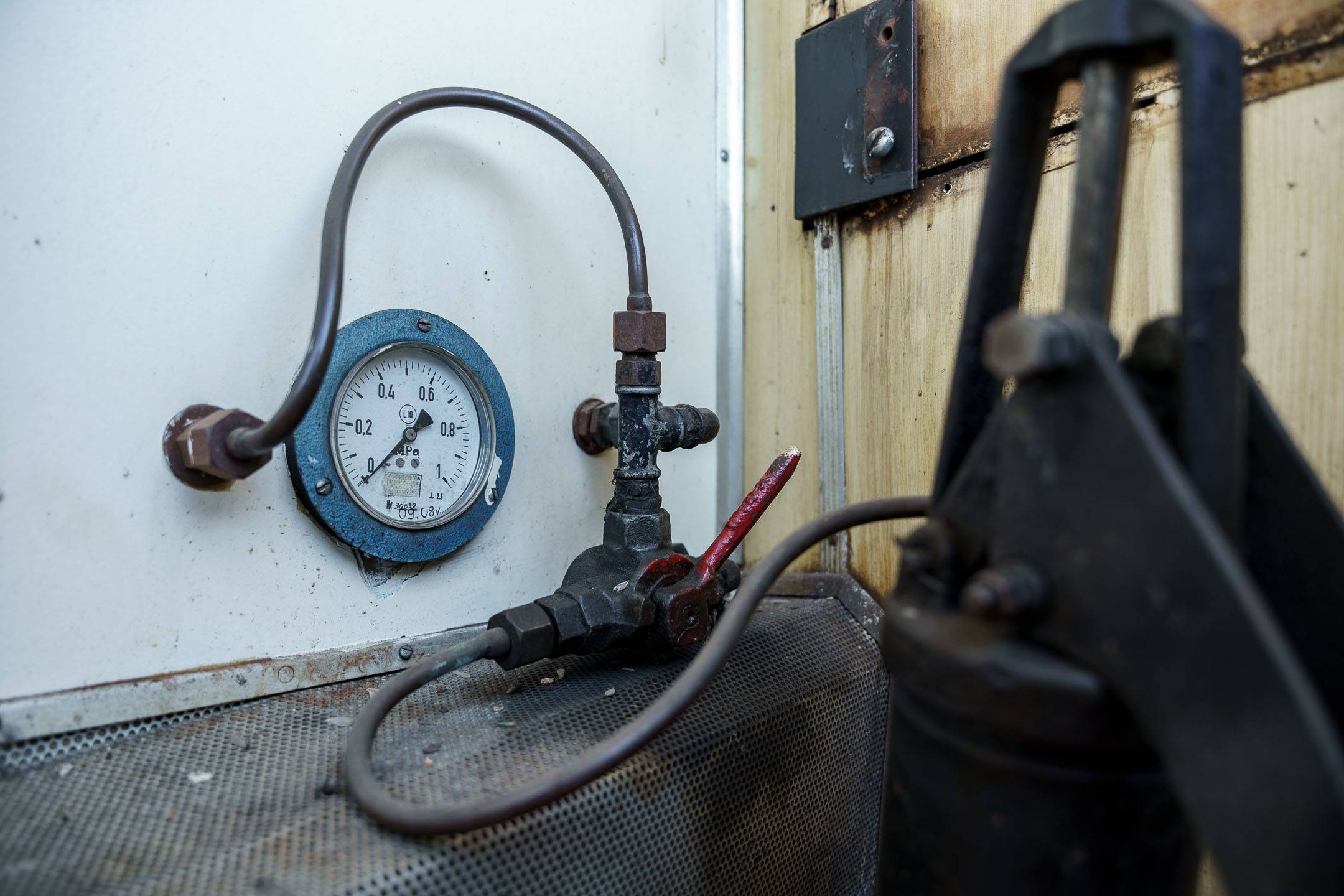 Obok wagonu stoją dwa zabytkowe żurawie wodne, które niegdyś służyły do napełniania parowozów. Choć dziś nie są podłączone do instalacji wodnej, ich ramiona wciąż się poruszają.