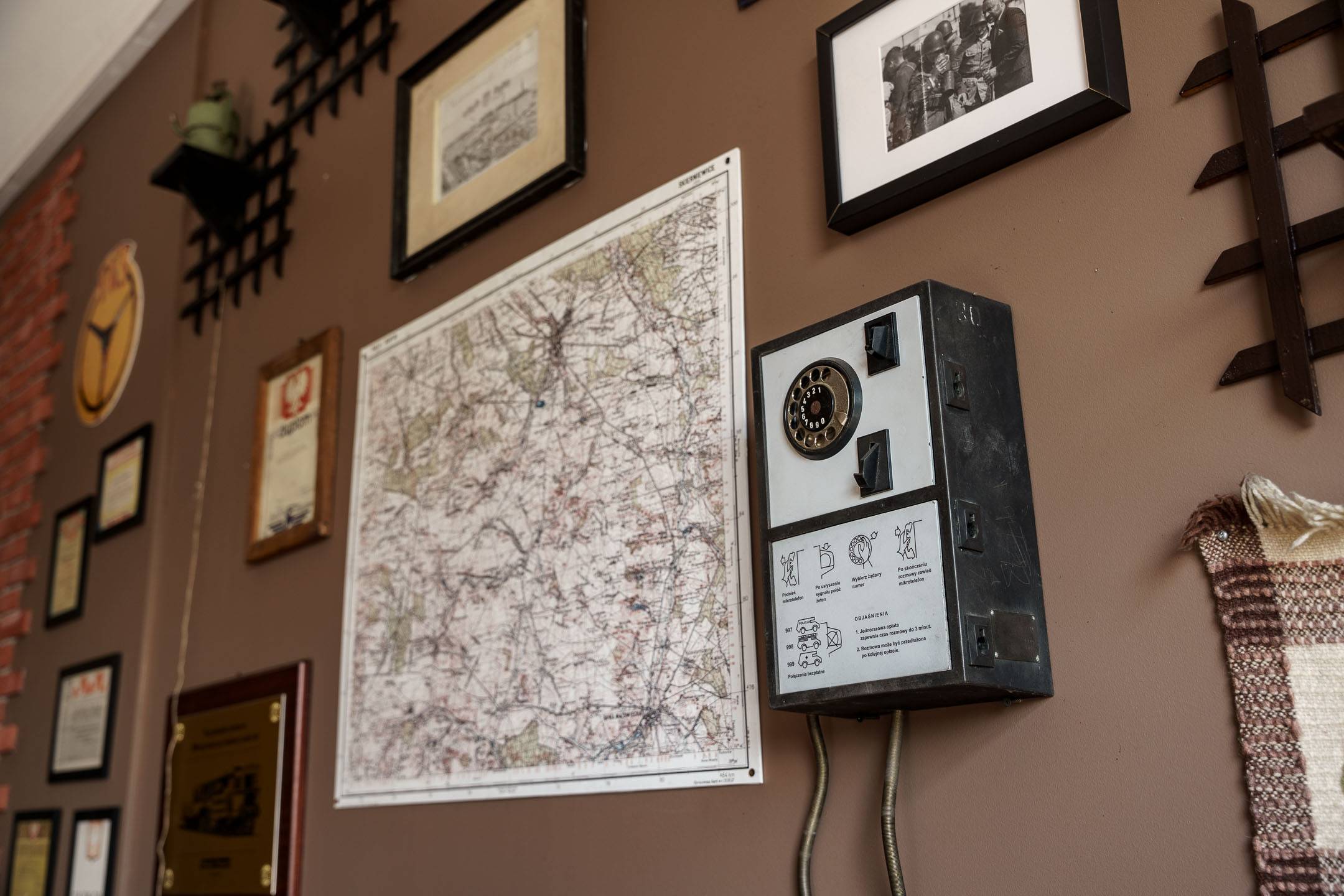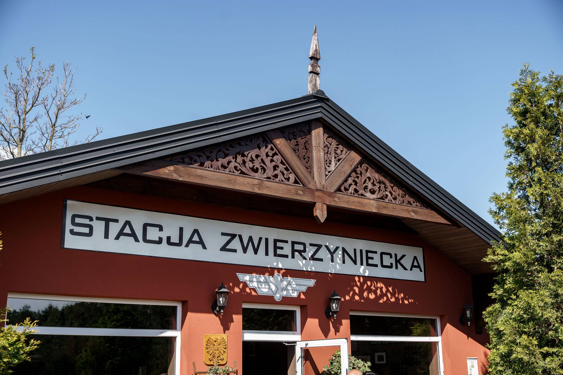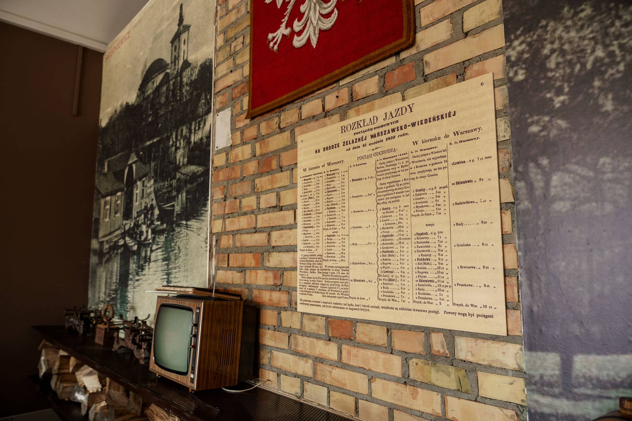 Obok pociągu stoi budynek stylizowany na stacje kolejową. Wewnątrz można znaleźć liczne przedmioty związane z koleją – plakaty, czapkę kolejarza, stare tablice, zdjęcia i obrazki. Właściciel zadbał o detale, tworząc wystrój nawiązujący w pełni do tematyki kolejowej. Całość oddaje klimat dawnych podróży pociągiem i stanowi ciekawe miejsce dla miłośników kolei.