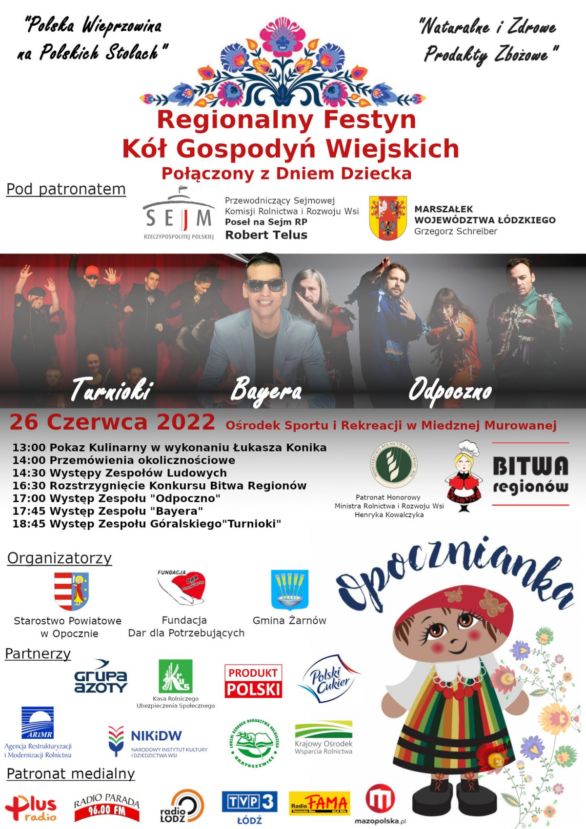 Wydarzenie rozpocznie się pokazem kulinarnym Łukasza Konika o godz. 13.00, a zakończy występem zespołu góralskiego „Turnioki". Nie zbraknie również występów zespołów lokalnych, a także rozstrzygnięty zostanie konkurs „Bitwa Regionów".