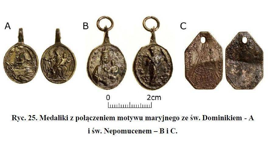 • monety z XV wieku, m.in. denary Władysława Warneńczyka i Kazimierza Jagiellończyka, a także szelągi Zygmunta III Wazy, Stefana Batorego i Jana Kazimierza, które wkładano do ust zmarłym jako "zapłatę" dla przewoźnika dusz;