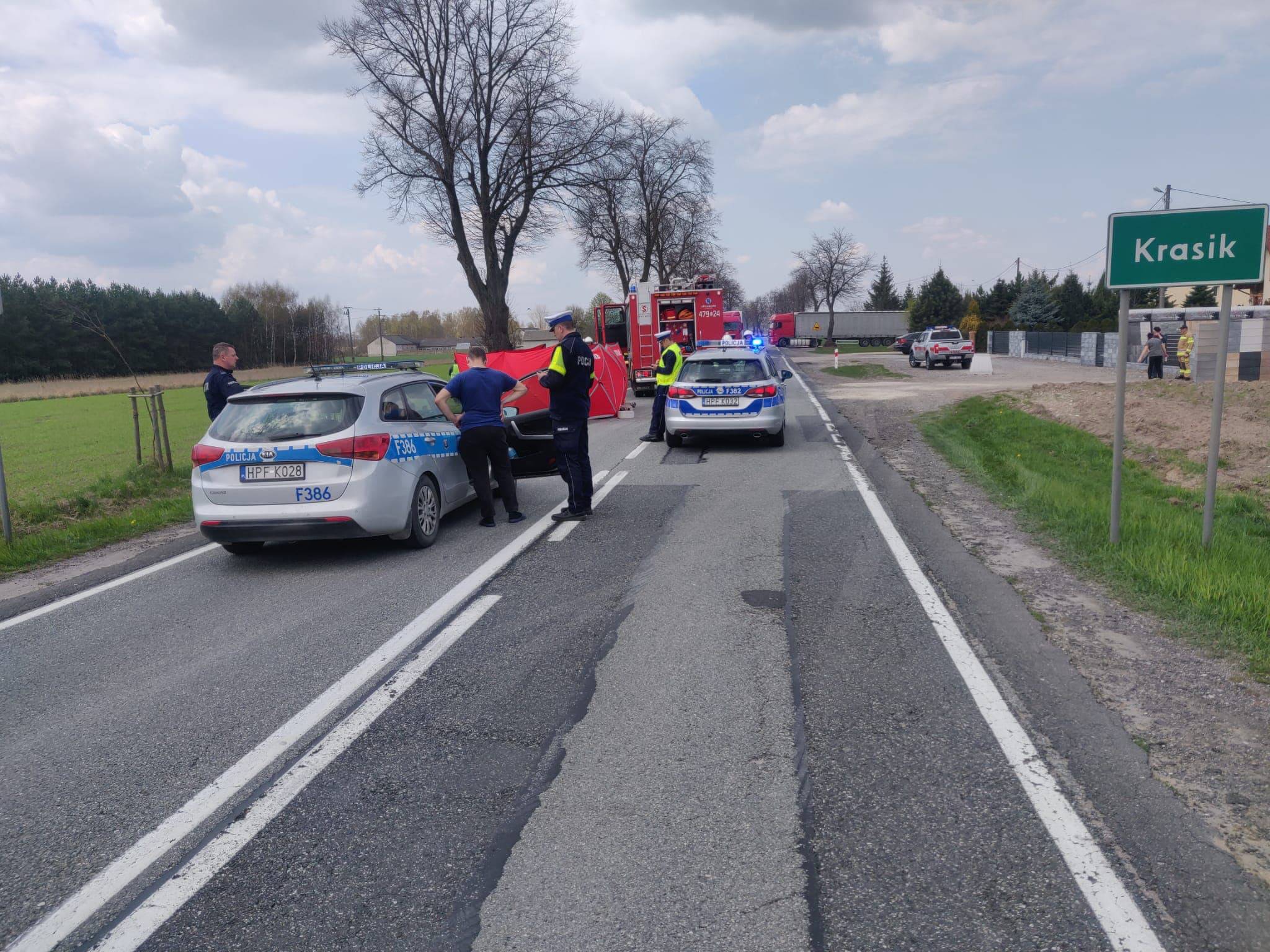 W czwartek, 28 kwietnia po godzinie 11:00 do stanowiska kierowania Komendanta Powiatowego Państwowej Straży Pożarnej w Opocznie wpłynęło zgłoszenie o wypadku na DK74. Jak podaje Generalna Dyrekcja Dróg Krajowych i Autostrad, na wysokości miejscowości Krasik (gm. Paradyż) samochód ciężarowy śmiertelnie potrącił pieszego.