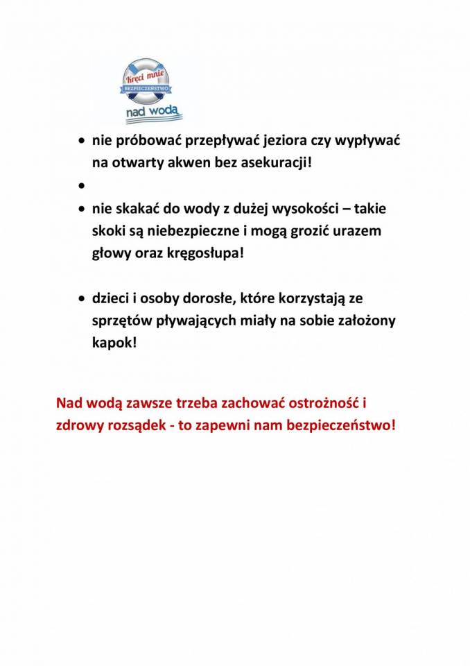 Kolejny raz apelujemy o rozsądek nad wodą. Przypominamy, podstawowe zasady bezpiecznej kąpieli. Uważajcie na siebie nad wodą.