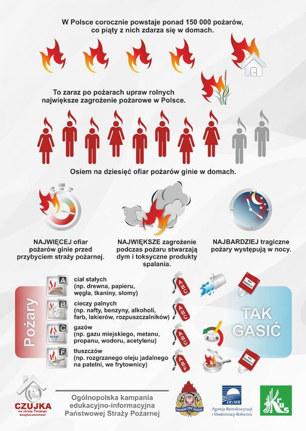 W okresie jesienno-zimowym, w naszym kraju w mieszkaniach i domach jednorodzinnych wzrasta ryzyko powstania pożarów. Najczęściej dochodzi do nich w wyniku wad, albo niewłaściwej eksploatacji urządzeń grzewczych, elektrycznych i gazowych. W tym samym okresie odnotowywany jest także wzrost liczby zatruć tlenkiem węgla, zwanym "cichym zabójcą", gdyż jest niewidoczny oraz nie ma smaku, ani zapachu.