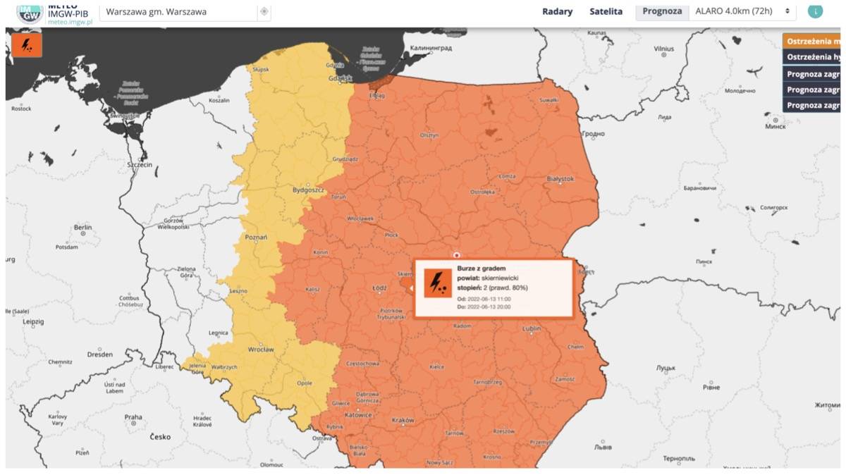 Prawdopodobieństwa wymienionych zjawisk określono na 80%, a alert ma poziom II w trzystopniowej skali. O tym, jak niebezpieczna może być pogoda, niestety mogliśmy się przekonać zaledwie. kilka dni temu. W miniony czwartek, 9 czerwca przez Łódzkie przeszedł szereg burz i ulew, które wyrządziły szkody w różnych regonach województwa, więcej o przykrych skutkach zeszłotygodniowej pogody przeczytasz w artykule >>> Skutki burz: Ludzie po ulicach pływali kajakami. Od piorunów płonęły budynki i drzewa! Ponad 200 strażackich interwencji [Wideo, foto]