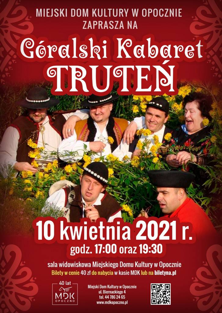 Miejski Dom Kultury serdecznie zaprasza na Góralski Kabaret TRUTEŃ, który odbędzie się 10 kwietnia (sobota) o godz. 17.00 i 19.30 w MDK.