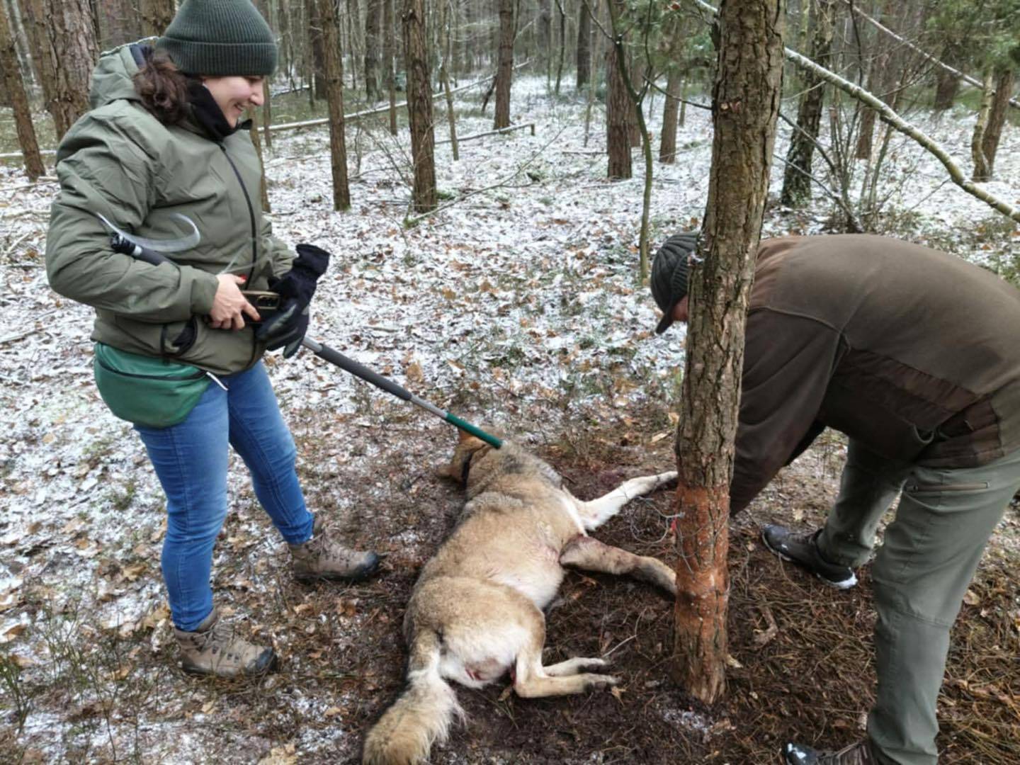 - 29 grudnia do bełchatowskiej policji wpłynęło zgłoszenie o psie przywiązanym do drzewa w lesie w miejscowości Zawały. Policjanci natychmiast udali się na miejsce wskazanym przez zgłaszającą. Na miejscu okazało się jednak, że nie był to pies, a wilk. Dzikie zwierze wpadło we wnyki ustawione przez nieznanego sprawcę - informuje asp. Marta Bajor z bełchatowskiej policji.