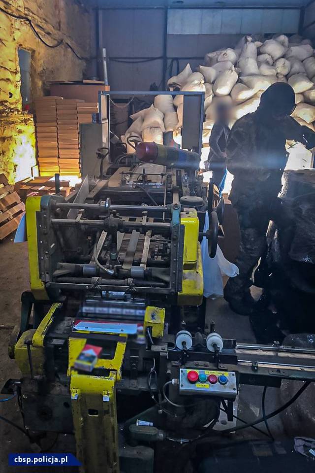 W ubiegłym tygodniu policjanci przeprowadzili działania likwidując fabrykę nielegalnych papierosów. Zabezpieczono wówczas pełną linię do produkcji papierosów, prawie 5,8 mln szt. papierosów z zastrzeżonym znakiem znanej światowej marki, blisko 1,7 tony krajanki tytoniowej, kilkadziesiąt palet z półproduktami służącymi do produkcji papierosów. Fabryka działała na prywatnej posesji w pomieszczeniu gospodarczym, gdy w tym czasie w domu mieszkało 13 pracowników, głównie obcokrajowców.