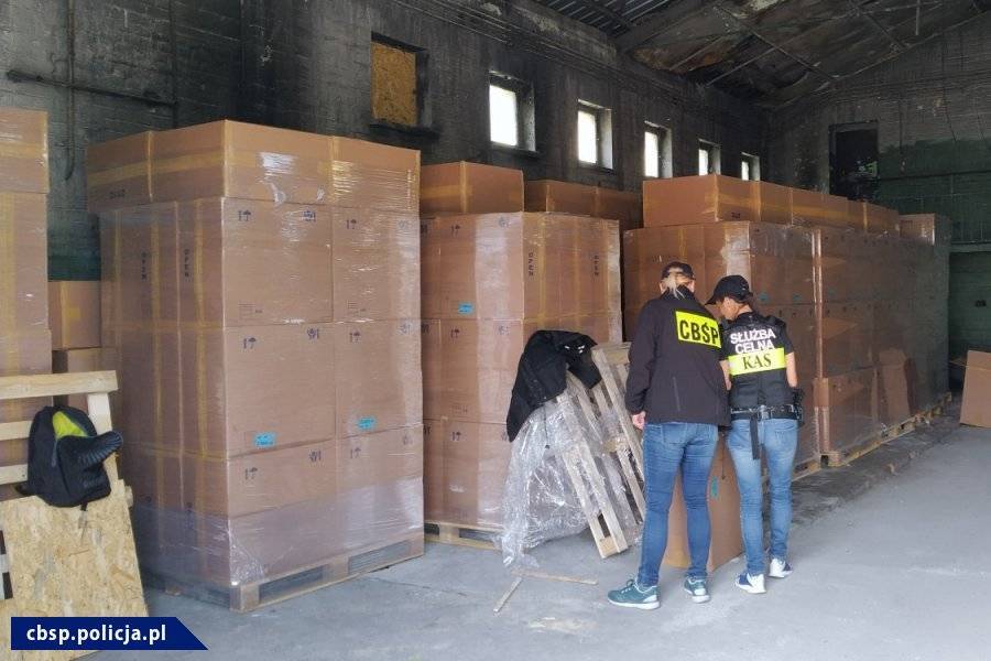 Jednocześnie służby wkroczyły do kolejnej nieruchomości. Tam ukryty był magazyn z komponentami do produkcji papierosów, w którym znajdowało się ok. 8,5 mln filtrów papierosowych.